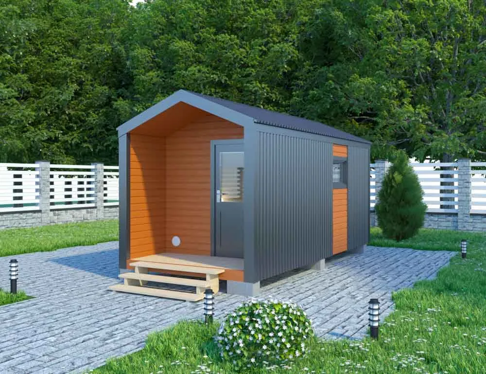 Бытовка для дачи в стиле хай-тек с цветным профлистом 5х2.45х2.412ДВП-Оргалит: