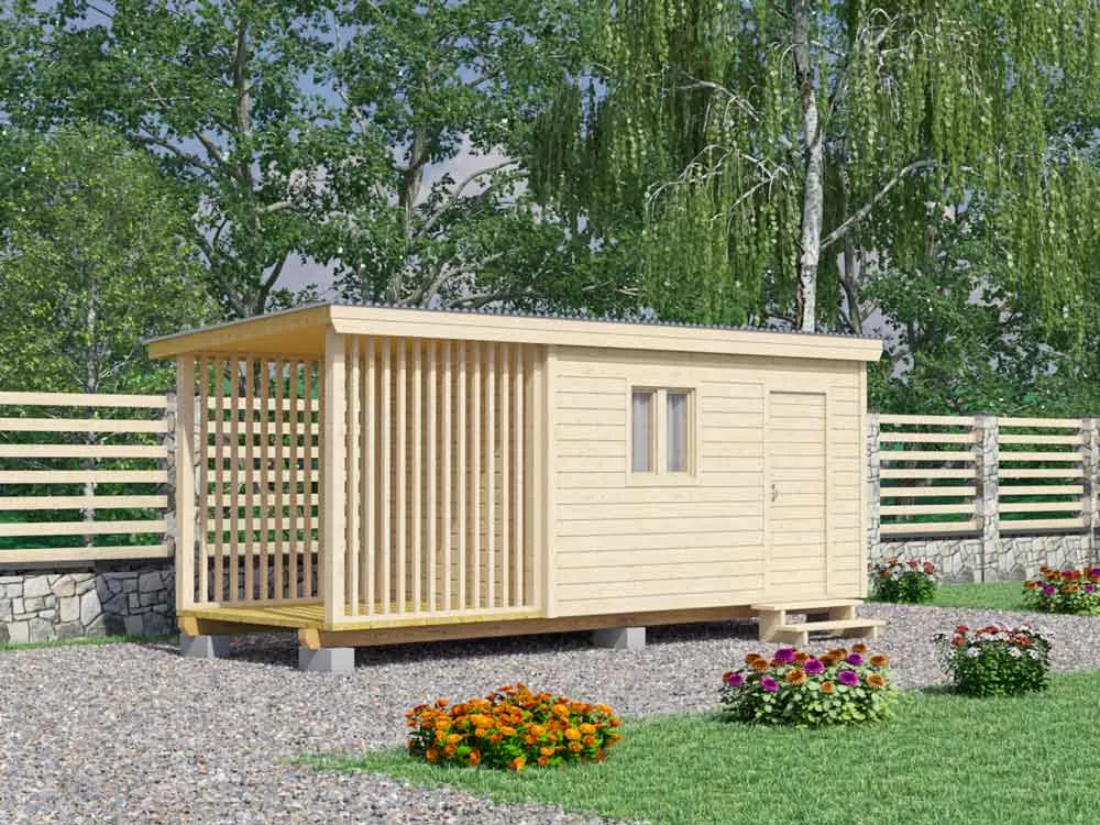 Бытовка для дачи в стиле хай-тек 4,8х3 с верандой4,8х314.4ДВП-Оргалит: